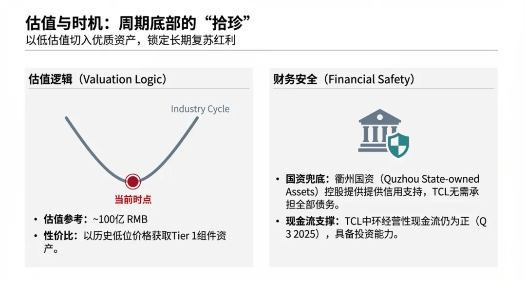 • 表决权委托 (Proxy): 先不支付大笔现金,先行实现实质控制,保护TCL脆弱的现金流。 • 后续增资: 资金主要用于偿还债务和技改,而非流向老股东。