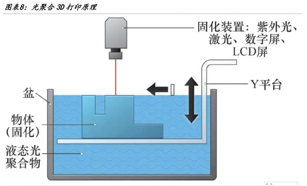光聚合是最常见的用来进行聚合物打印的技术路线,当光聚合物树脂暴露在特定波长的光下时,会发生化学反应,使其变成固体。通过对光源进行升级、加入 Z 轴连续运动等优化出现了直接光处理、连续液体界面打印等新的技术路线。