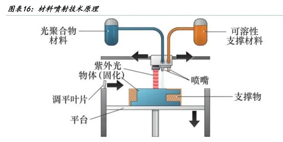 材料喷射技术与喷墨打印机将墨水逐层放置在一张纸上的方式相同,材料喷射将材料沉积到构建表面上,然后使用紫外光固化或硬化该层。逐层重复,直到对象完成。