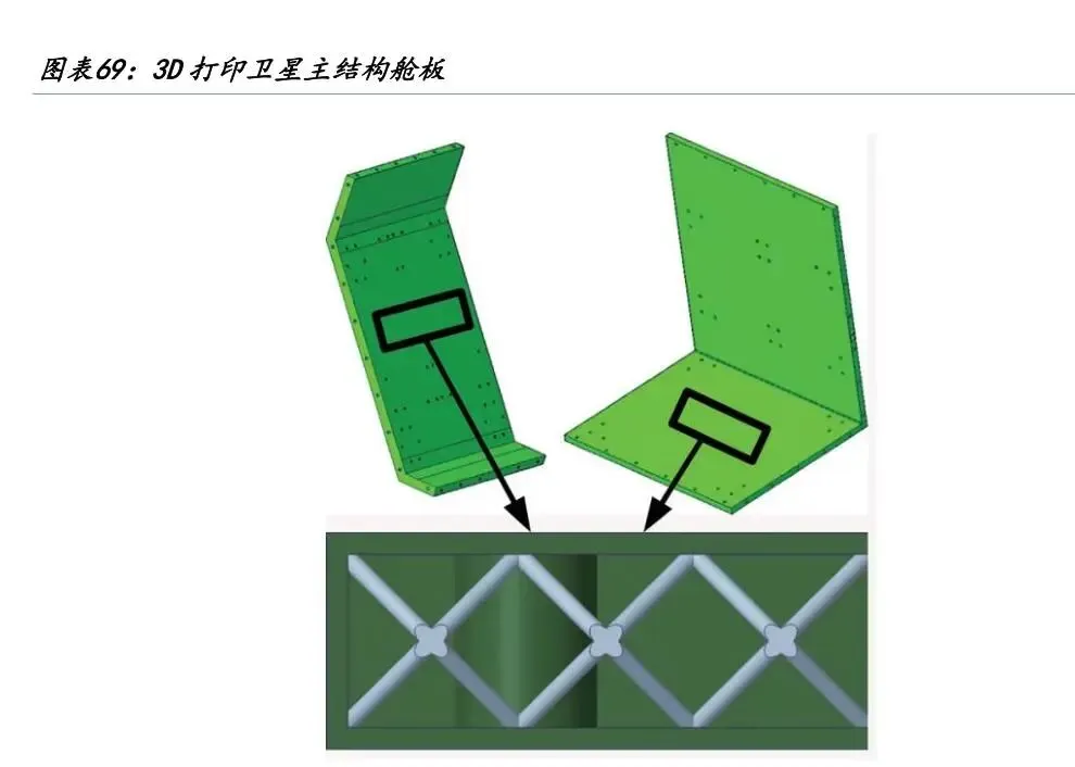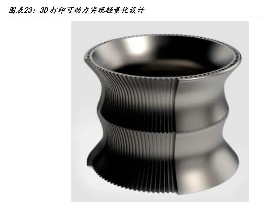 以一架起飞重量达 65t 的波音737飞机为例,机身每减轻一磅的质量每年将节省数十万美元的燃油成本,在航空航天领域追求轻量化一直是终极目标之一。3D 打印可通过中空夹层/薄壁加筋结构、镂空点阵结构、一体化结构实现、异形拓扑优化结构等方式来实现轻量化。