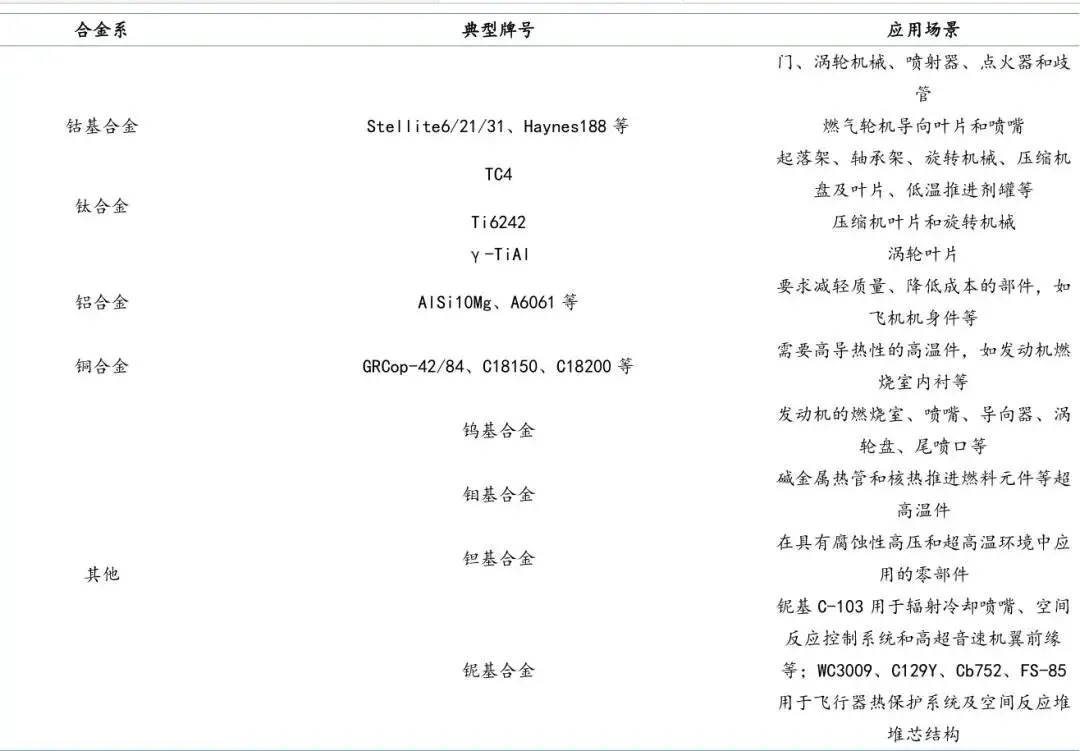 航空航天领域高新技术密集,航空航天高端装备的服役性能很大程度上取决于金属构件的性能。航空航天高性能构件多用于极端苛刻的环境,要具有超强承载、极端耐热、超轻量化和高可靠性等特点,其中铁基合金、镍基合金、钛合金、铝合金的生产和应用量大面广。