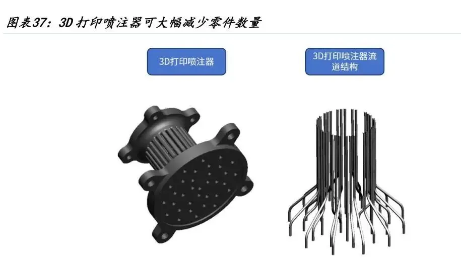 其中发动机喷注器壳体和推力室身部两个零件为金属 3D 打印,发动机喷注器壳体和推力室身部均为航天发动机关键零部件,零件内部有百余条冷却流道。