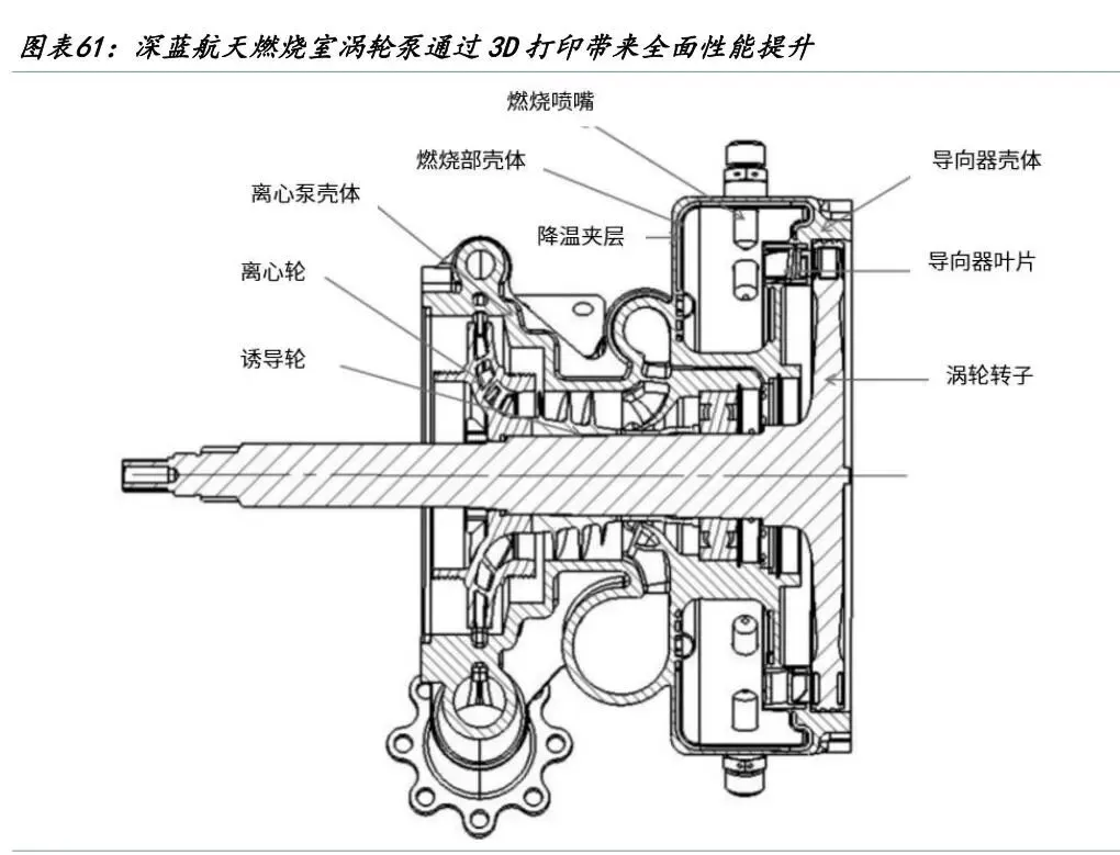 推力室的 3D 打印集中在喷注器、冷却喷管、燃烧室、涡轮泵等部件: