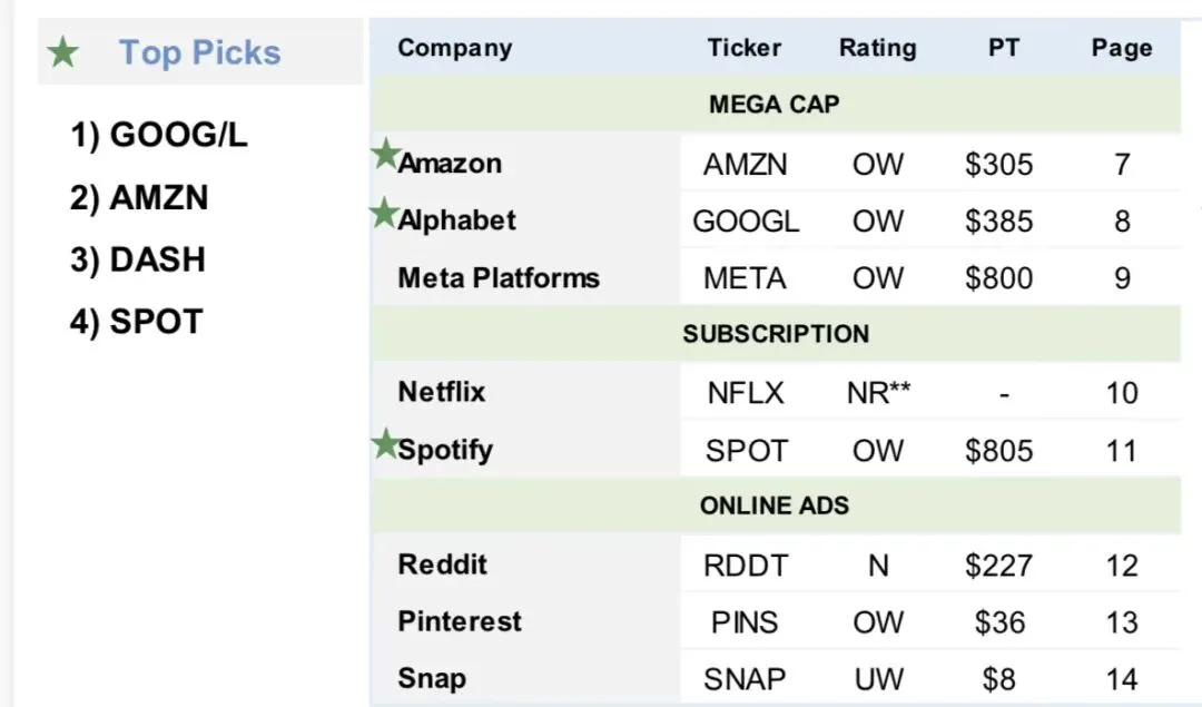 JPMorgan于2026年1月发布US Internet 4Q25 Preview,给予META Overweight评级,目标价$800,较当前$616有30%上行空间。