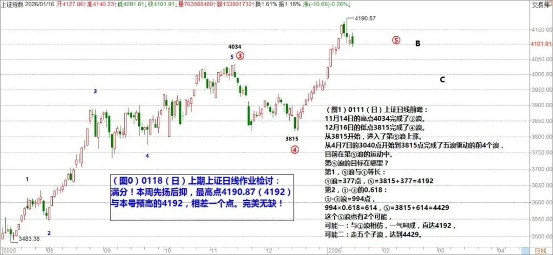满分!本周先扬后抑,最高点4190.87(4191)与本号预高的4192,相差一个点。完美无缺!