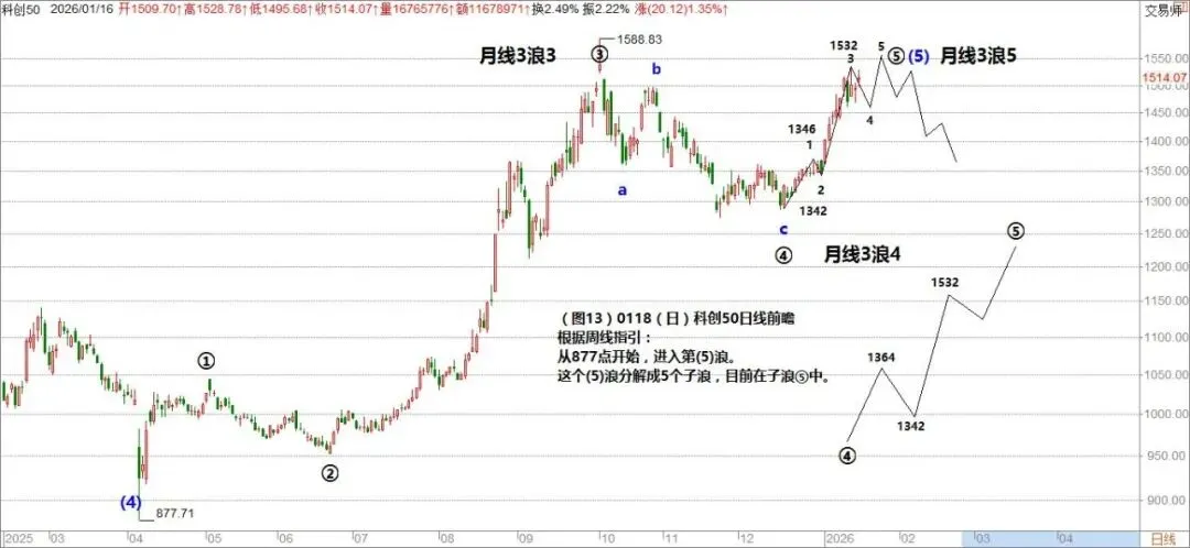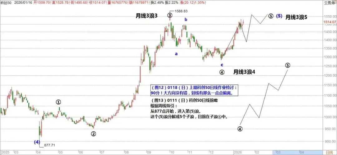 第二个可能,暂时排除。第2可能,①-③的0.618:①-③浪=994点,994×0.618=614,⑤=3815+614=4429