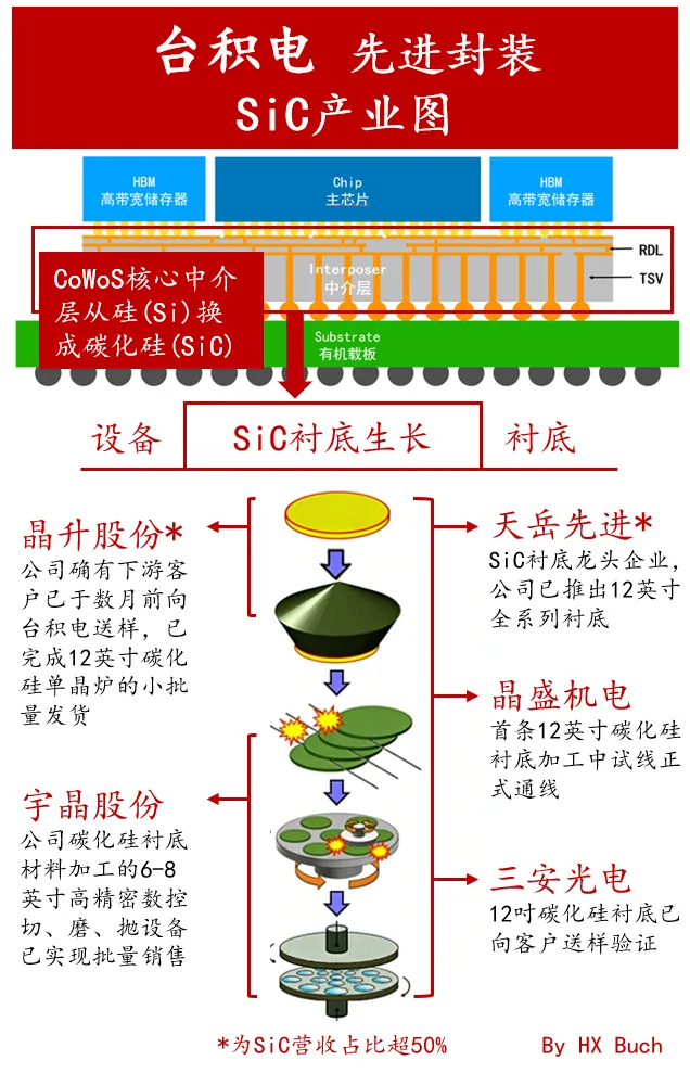 因为SiC有望成为CoWoS先进封装的新一代核心材料,#这是A股产业链第一次有望深度参与台积电最核心环节。