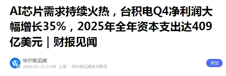 重磅消息全球晶圆代工龙头台积电发布2025年四季度财报