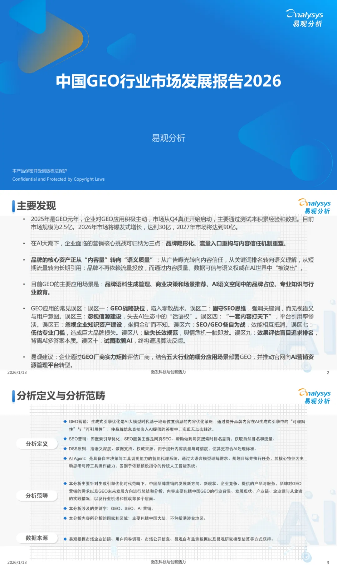 2025年是GEO元年,企业对GEO应用积极主动,市场从Q4真正开始启动,主要通过测试来积累经验和数据。