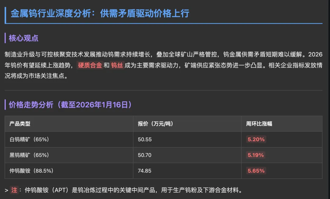 比如说钨金属,一方面是全球矿山在供给端严格管控,一方面是可控核聚变等需求持续增长。未来涨价是必然。