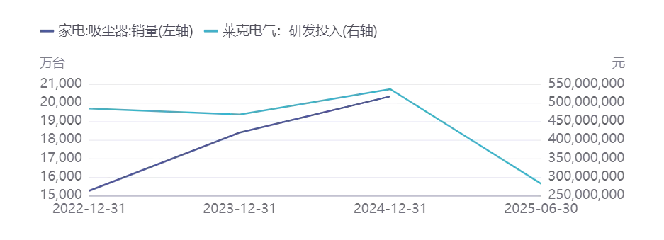 图表 吸尘器市场销量与莱克电气研发投入趋势 |