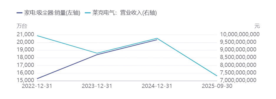 图表 莱克电气吸尘器市场表现与营收增长 |
