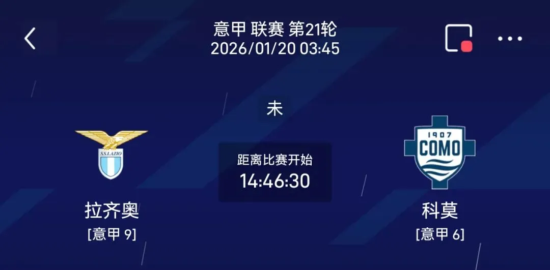 - 排名:拉齐奥第9(28分);科莫第6(34分),首回合科莫2-0拉齐奥
