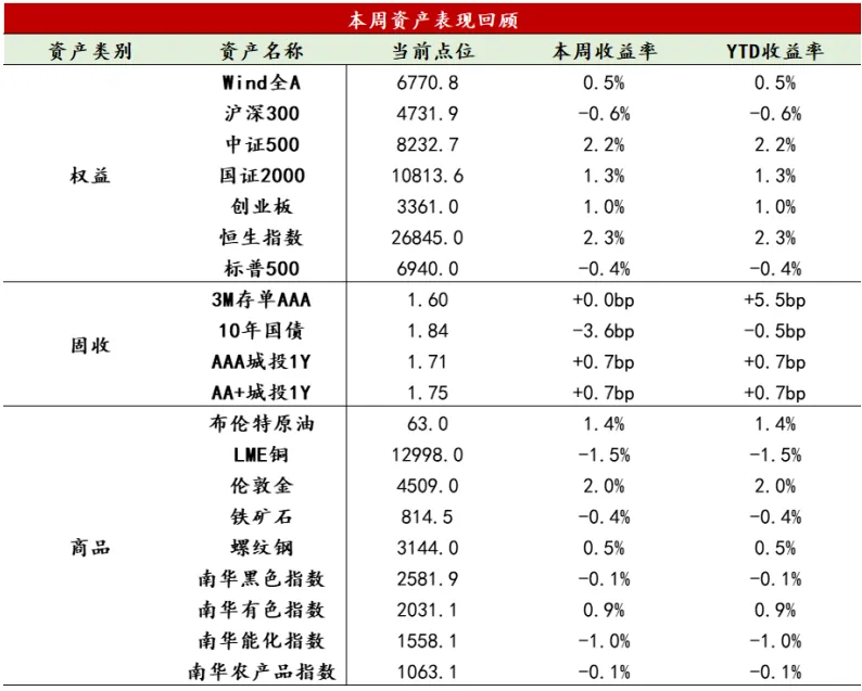 【股票】本周数据显示美国劳动力市场韧性较高,地缘风险提升,美股市场震荡偏弱,科技和金融板块分化;国内上半周成交量急速放大、主题板块暴涨,监管及时出手降温,周四周五市场缩量调整。A股日均成交额环比放量约1万亿元至约3.5万亿元附近,周三单日成交逼近4万亿元,融资余额持续攀升至2.7万亿以上。风格上,中盘股延续表现占优,大盘价值表现靠后。宽基指数上,中证500涨超2%,中证1000、中证2000涨幅在1%上下。受国家队控盘和主题板块全市场虹吸影响,上证50和沪深300继前一周再度回落,分别下跌1.74%、0.57%;万得微盘股上涨1.7%,中证红利下跌1.78%。计算机、电子、有色表现居前,国防军工、地产、农林牧渔表现垫底。周四、周五商业航天和AI应用跌幅较大,反映市场兑现意愿增加。港股市场科技与消费引领,主要指数全线收涨,恒生指数周涨幅达2.34%,恒生科技指数上涨2.37%。AH溢价收窄至120附近。南向资金全周净买入90亿,创开年以来新高。监管引导下,短期市场进一步上行的节奏可能放缓。临近业绩密集披露期,过去1个月业绩预减股明显跑赢预增股,后续或需回避基本面存在瑕疵、借助主题大幅波动的小微盘个股。对于场内资金而言,短期仍然需要选择资金出口,ETF逆周期调节为配置盘提供上车红利资产的窗口,场内热钱不排除涌入筹码结构更优、宽基指数持有比例相对较低、基本面扎实的科技类板块。