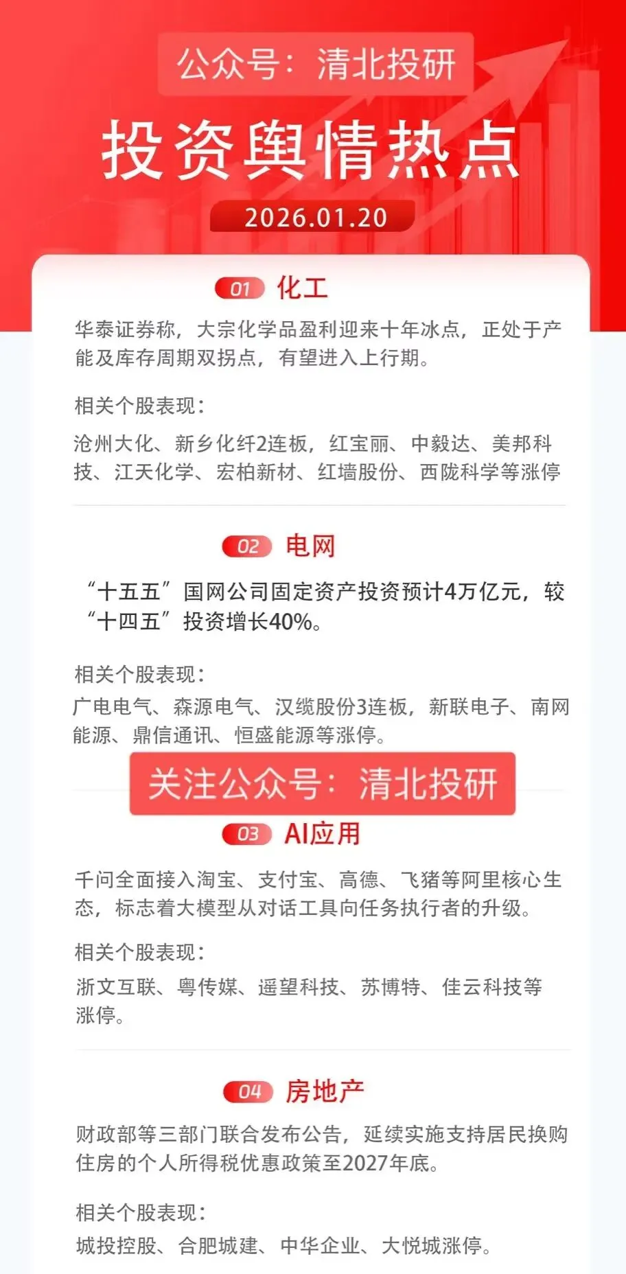 盘面上,市场震荡调整,热点由科技股切换至防御性板块。化工板块持续拉升;大消费概念集体走强,零售、机场航运等方向领涨;黄金股午后上扬,房地产板块走高;电网设备板块维持涨势,机器人板块表现亮眼,AI应用概念盘中反弹;保险、银行、高息股拉升,存储芯片、煤炭等板块均有所表现。
