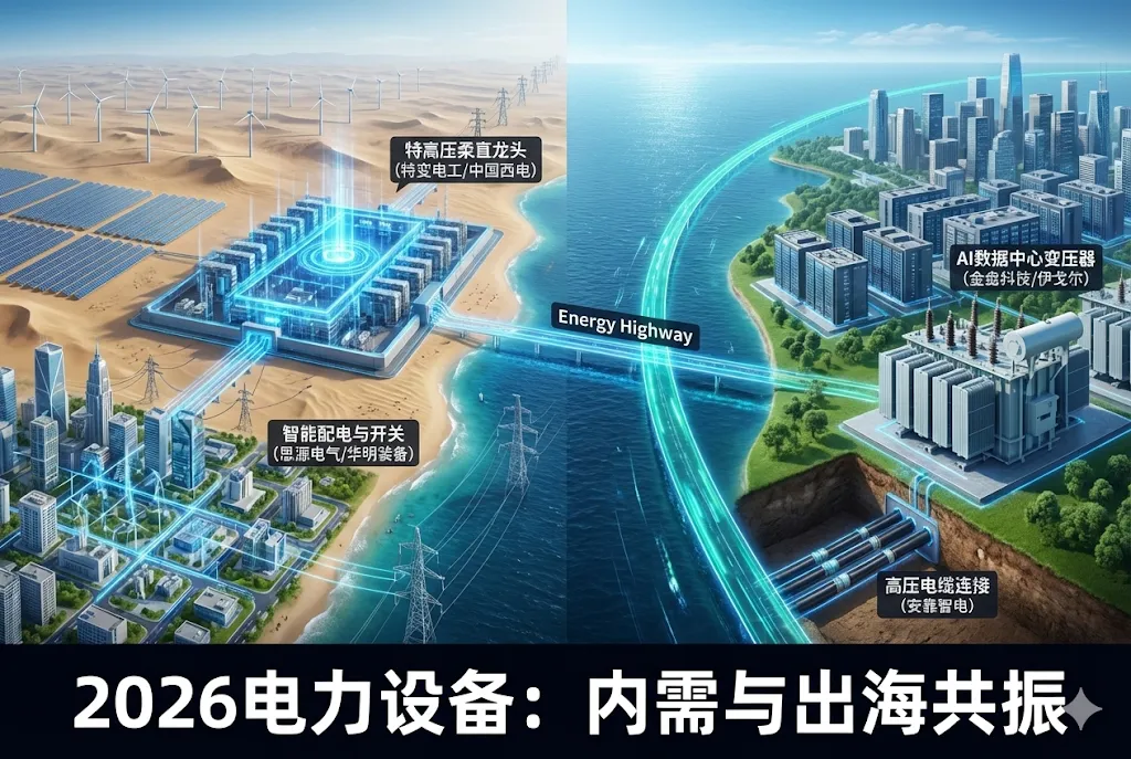 摘要2026年作为“十五五”开局之年,电网投资率先吹响号角。国家电网宣布“十五五”期间固定资产投资规模达4万亿元,较“十四五”增长40%,重点投向特高压、智能配电网、微电网等新型电力系统环节。与此同时,海外AI算力爆发式增长催生电力扩容需求,北美电网老化与数据中心耗电激增倒逼设备更新,中国供应链凭借技术优势和交付能力加速出海。内外需叠加下,电力设备行业从周期属性转向成长赛道,细分领域龙头有望持续受益。特高压柔直技术成核心抓手,配电网扩容迫在眉睫本轮投资中,特高压柔直技术成为技术焦点。该技术可智能调节电力流动,适配新能源大规模接入的复杂场景,预计“十五五”期间新建特高压项目将大规模采用。另一方面,分布式光伏和充电桩渗透率提升推动配电网升级需求。招商银行研究显示,“十五五”配电网投资总量约1.75万亿元,年均规模3500亿元,增速超15%。政策明确将构建“主配微协同”电网平台,巩固“西电东送、北电南供”格局,设备企业订单可见度显著提升。7只细分龙头标的解析01特变电工全球能源系统解决方案服务商,变压器产能居行业前列,业务覆盖70余国。公司近期股价创历史新高,融资资金持续流入,在特高压交流环网与直流通道建设中具备核心设备供应能力。02金盘科技干式变压器龙头,深耕数据中心配电场景。2025年与海外客户签订9899万美元数据中心电力合同,海外收入占比快速提升,直接受益于AI算力中心配套电源需求。03思源电气智能配电与特高压设备双轮驱动,海外毛利率达35.69%。自2020年以来股价累计涨幅14倍,成为公募重仓股,在电网数字化与出海替代浪潮中优势显著。04中国西电输配电设备成套能力行业领先,高压、特高压交直流产品线完整。2026年以来股价涨幅超40%,位居特高压板块榜首,在柔直技术工程化应用中具备先发优势。05华明装备电力设备专业制造商,核心产品覆盖开关设备及变压器组件。公司2024年净利润同比增长13.25%,在配电端设备更新需求中产能利用率持续攀升。06伊戈尔变压器供应商重点对接北美市场,2024年营收同比增27.78%。北美电网改造与数据中心备电需求迫切,公司出口业务呈现量价齐升态势。07安靠智电高压设备与电缆连接系统供应商,订单关联海外数据中心项目。公司2024年营收突破10亿元,在高压直埋技术领域专利布局密集。【压轴核心】诚心向大家推荐我私藏的宝藏号:这个号不玩套话,只上干货!要是你厌倦了马后炮,迫切想 get 前瞻性的真知灼见,这号值得你立刻关注!!!免责声明:本文内容是基于全网公开资料的信息整理,仅可作为学习、交流使用,在任何情况下,本文内容或所表述的意见均不构成对任何人的投资建议,无论是否已经明示或暗示,本文章不能作为道义的、责任的和法律的依据或者凭证。