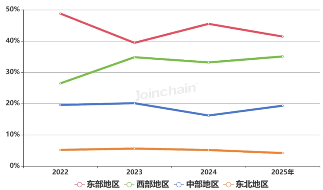 图表8 2022-2025年我国监护设备区域市场份额趋势