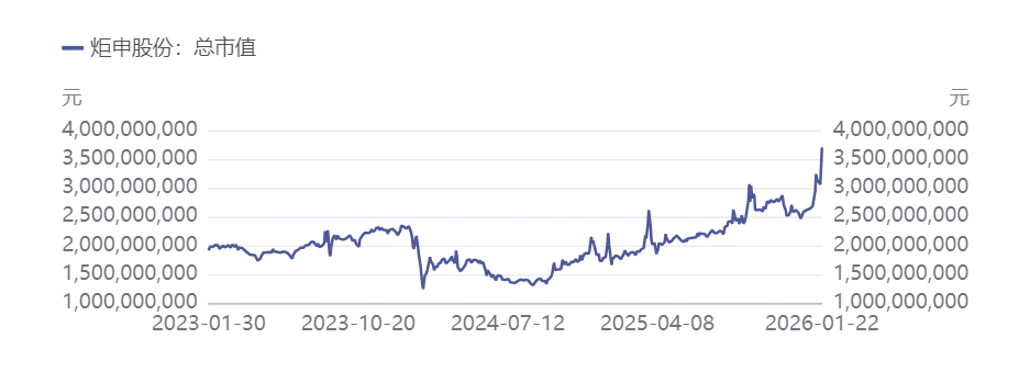 图表 炬申股份市值表现 |