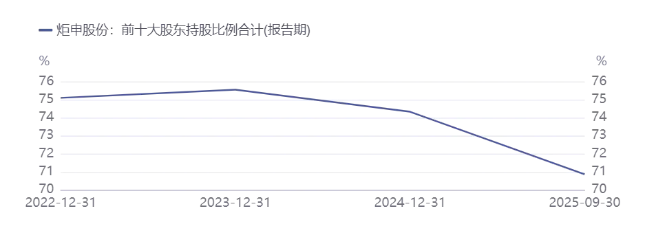 图表 炬申股份前十大股东持股比例集中度 |