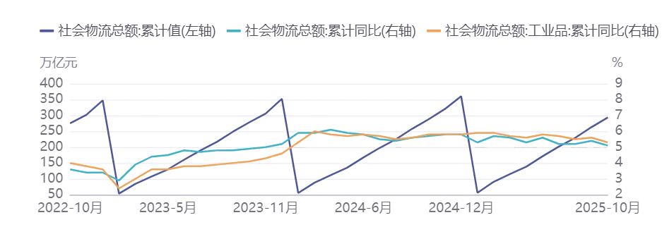 图表 社会物流总额构成与增长趋势 |