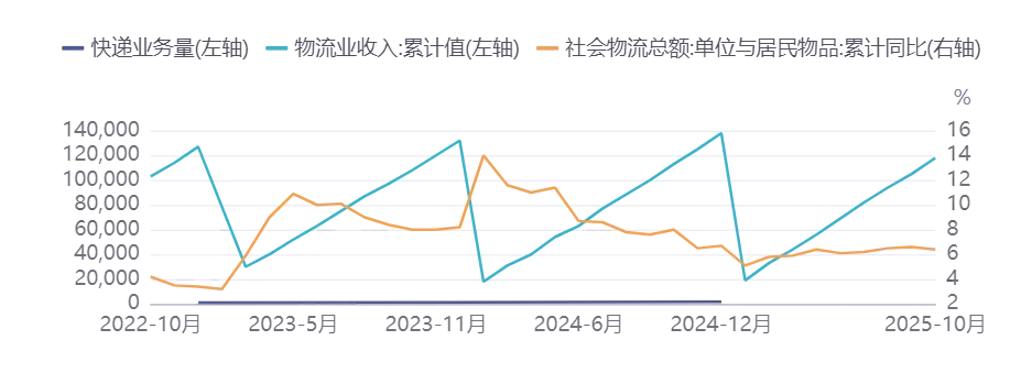 物流行业整体发展平稳,社会物流成本持续下降。2024年全国社会物流总额达到360.6万亿元,同比增长5.8%,增速比上年提高0.6个百分点,显示出物流行业的稳定增长[21][22]。物流业总收入为13.8万亿元,其中工业品物流总额同比增长5.8%,贡献率为77%,是物流需求增长的主要动力[21]。2025年,物流行业景气指数为52.4%,表明实体经济物流需求活跃[23]。政策方面,国家推出的超长期特别国债政策对贵州物流行业释放了重大利好,特别是在智慧仓储、冷链物流等领域的重点支持,缓解了行业融资压力[24]。这些因素共同推动了物流行业的健康发展。