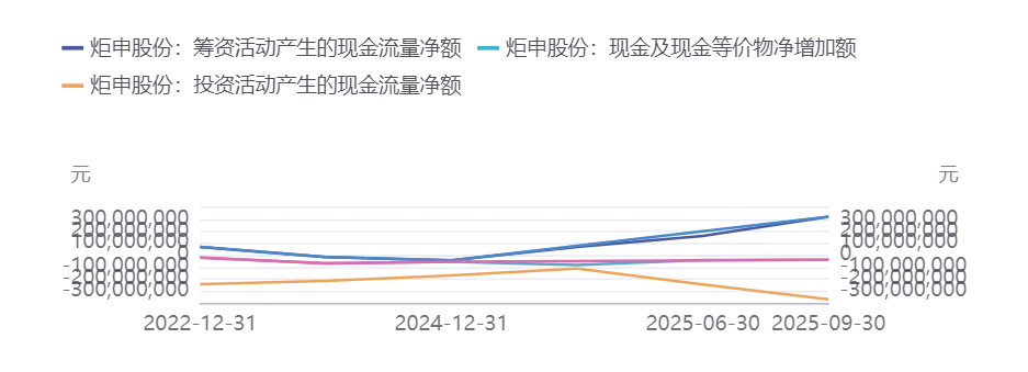 经营活动现金流量稳定增长,运输业务贡献显著。炬申股份在2024年各季度的经营活动现金流量显示出积极的增长趋势。2024年12月31日,销售商品、提供劳务收到的现金达到110,481.95万元,显示出公司在经营活动中较强的现金获取能力[81]。2024年全年,经营活动产生的现金流量净额分别为1.51亿元、1.61亿元和1.59亿元,保持在较高水平。2023年和2024年,经营活动产生的现金流量净额占营业收入的比重较高,这主要得益于运输业务收入的减少,公司在优化业务质量方面取得了显著成效[64]。尽管2025年3月31日的经营活动现金流量净额为-3673.47万元,但2025年9月30日的净额回升至1146.87万元,显示出公司在经营活动中具备一定的自我造血能力。整体来看,炬申股份的经营活动现金流量在2024年呈现出稳定增长的趋势,为公司的持续发展提供了有力支持。