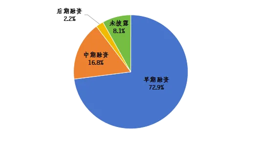 从融资阶段来看,2025年成都高新区早期投资(A轮及以前)共135起,占比72.9%;中期投资共31起,占比16.8%;后期投资共4起,占比2.2%,区域投资生态投早、投小特征显著,早期创新活力充沛。