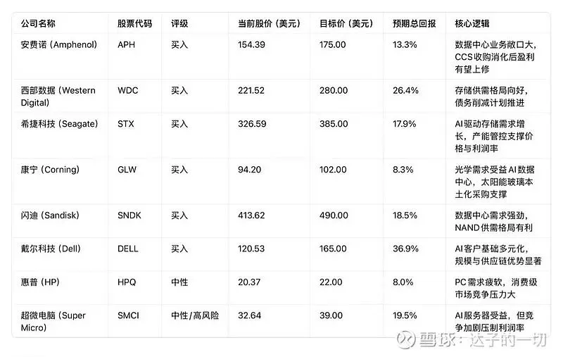 • 风险提示:本文仅基于机构研报内容整理解读,不构成任何投资建议;AI基础设施投资放缓、内存价格波动超预期、行业竞争加剧、宏观经济下行、关税政策变化等因素可能导致行业发展不及预期;投资需谨慎评估各类风险,独立判断决策。