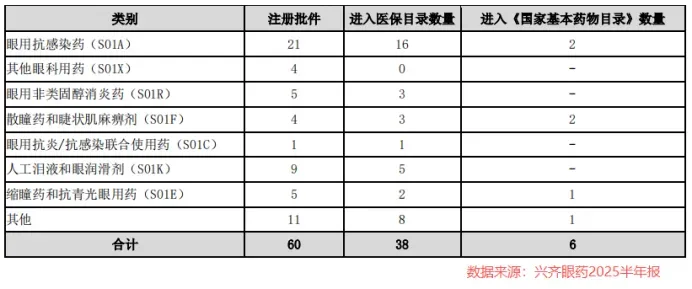 公司产品涵盖了主流眼科药物,包括抗感染药、眼用抗炎药、干眼治疗药等,很多品种也具备独家优势。截至2025年上半年,公司共拥有眼科药物批准文号60个,6个产品更是被列入国家基本药物目录。