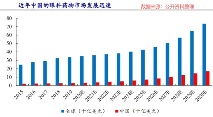 目前,近视防控方面,药物防治由于成本低、用药方便等特性,已经越来越成为趋势。预计到2030年,我国眼科药物市场规模有望达到200亿美元。