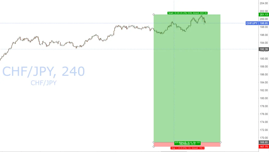 美元兑日元(USDJPY):已40:1减仓,尾仓止损维持原位瑞郎兑日元(CHFJPY):已29:1减仓,尾仓止损移动至187.00欧元兑加元(EURCAD):已10:1减仓,止损移动至1.6000英镑兑日元(GBPJPY):已20:1减仓,尾仓止损维持原位欧元兑日元(EURJPY):已18:1减仓,尾仓止损移动至174.50纽元兑日元(NZDJPY):已13:1减仓,尾仓止损维持原位瑞郎兑日元(CHFJPY):已12:1减仓,尾仓止损维持原位纽元兑日元(NZDJPY):已6:1减仓,尾仓止损维持原位