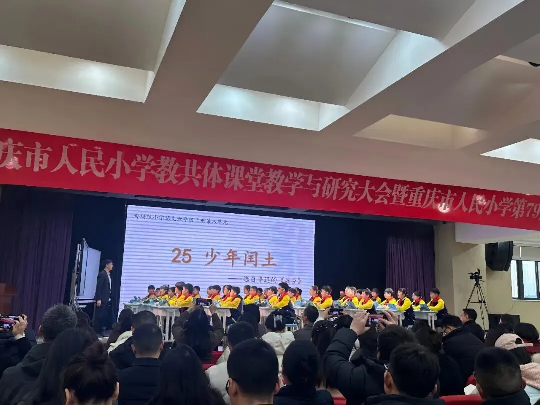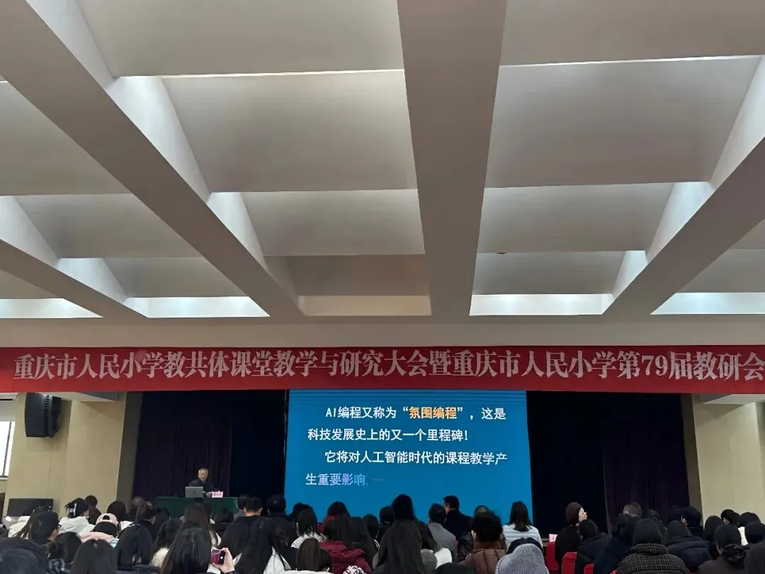 冬阳暖校园,研思启新程。2026年1月8日,刘红强名师工作室组织全体成员赴重庆市人民小学综合楼五楼报告厅,参与人民小学教共体主办的第79届教研会。本次教研会以“AI技术与学科教学深度融合”为核心,积极响应国家教育数字化战略行动2.0与“十五五”开局之年的时代命题。工作室成员全程沉浸式学习,聚焦极简语文理念的数字化实践路径,收获颇丰。