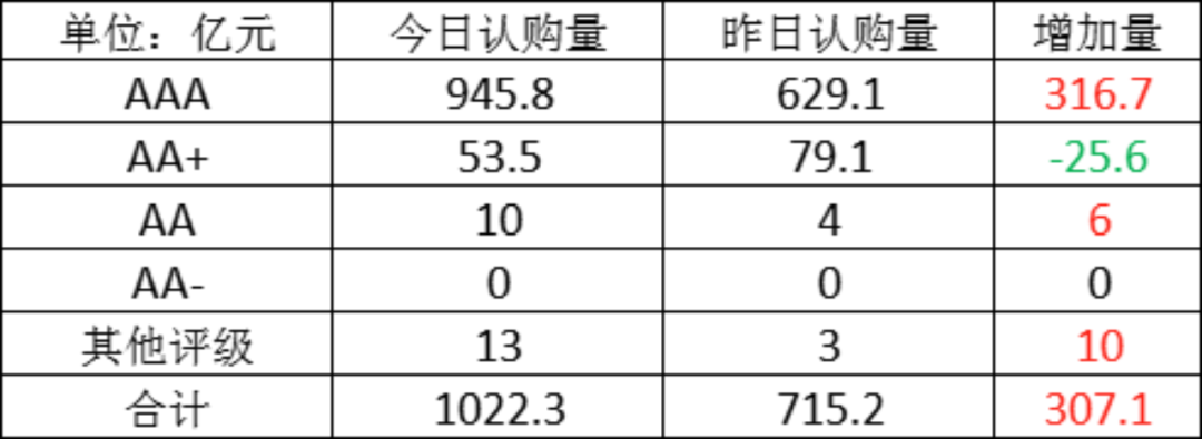 今日存单认购量规模1022.3亿元,较上一工作日认购量有所增加,增加了307.1亿元。