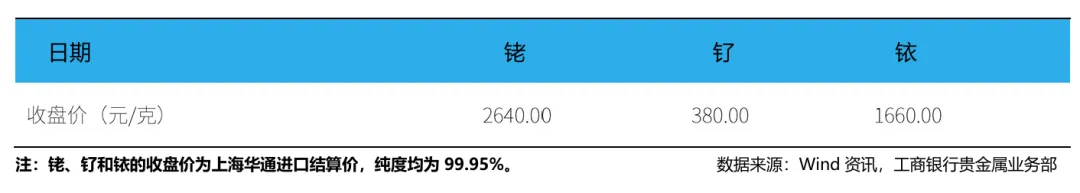 根据上海华通的数据显示,截至1月23日,99.95%现货铑金进口结算价为2640元/克,上涨2.92%。99.95%现货钌金进口结算价为380元/克,下降5%。99.95%现货铱金进口结算价为1660元/克,上涨1.84%。