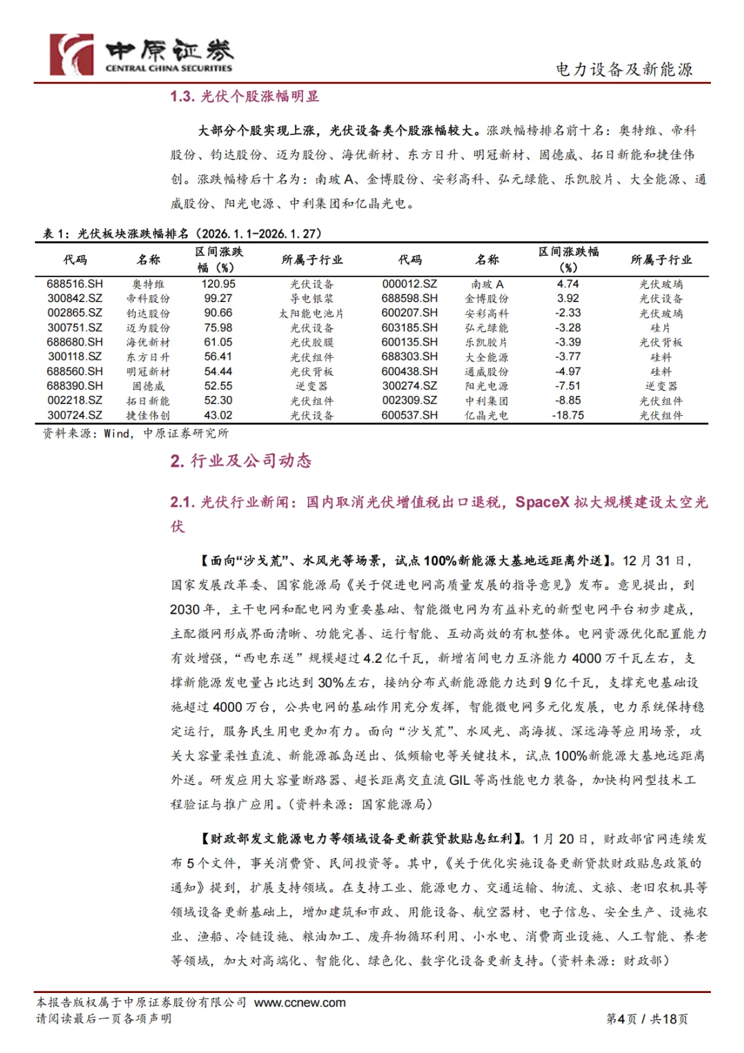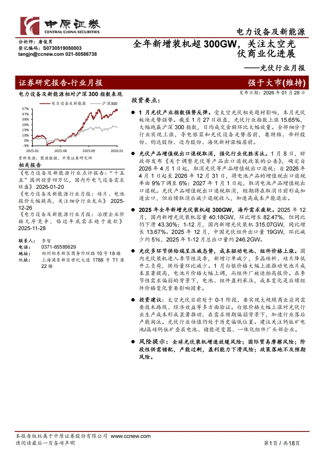 『研报』光伏行业月报:全年新增装机超300GW,关注太空光伏商业化进展