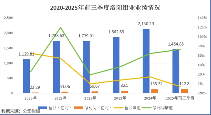 1月15日,洛阳钼业披露2025年业绩预告,预计2025年实现净利润200亿元到208亿元,同比增长47.8%到53.71%。