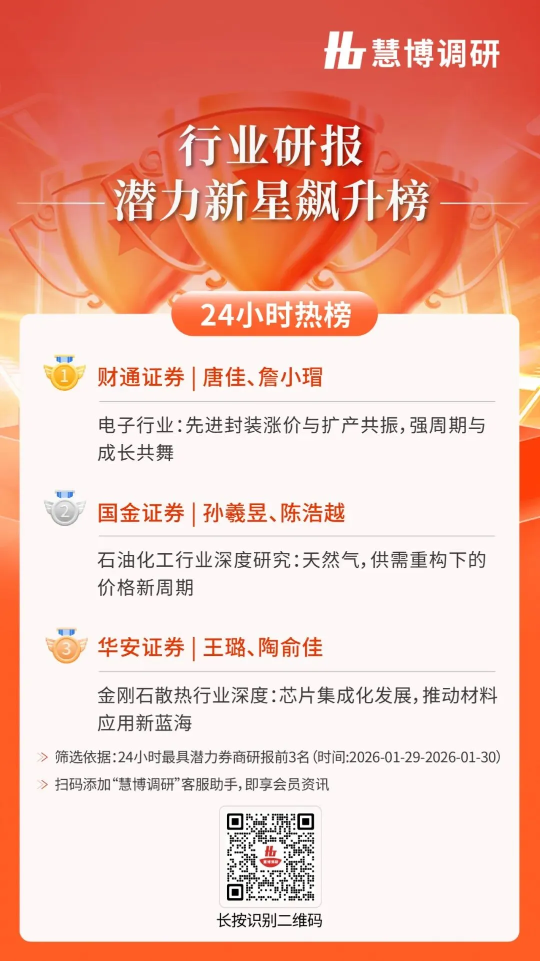 通过慧博投研“600W+注册用户,90%机构用户”的庞大客户群体,本月我们揭晓2026年1月行业研报两大榜单——“行业研报热词风向标”、“重获券商青睐公司研报TOP榜”。本次榜单的评选基于深入的数据分析和严谨的评选指标,全方位展现市场热点与企业潜力,旨在为读者提供精准、前瞻的市场洞察,助力把握投资先机。