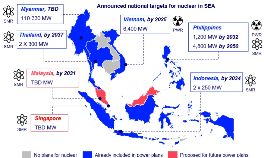 GCNR研报 | (下)谁将成为东南亚的首批核电国家?05东盟核能发展的产业链制约与可再生能源不同,核能并非单纯的发电技术部署,而是涉及资本、监管、人才、燃料循环、运营与维修(O&M)、供应链、保险、退役及废物治理等多个环节的复杂产业系统。因此,东盟核能复兴并非仅取决于政策意愿与气候目标,而取决于整个核能产业链的可交付性与制度匹配程度。从这一角度审视,东盟在核能部署中承受至少以下几类结构性挑战。1. 制度基础设施欠成熟核能产业的运转高度依赖制度基础设施,包括:独立监管机构、核损害赔偿法律、燃料循环协议、保险机制与民事责任制度、退役规划、废物处置及财务透明性等软基础设施。建立一个成熟且独立的核监管体系通常需要10到15年以上的持续投入。目前大多数东盟监管机构仍处于起步阶段,缺乏对现代反应堆设计进行独立安全评估的经验。菲律宾最先补全了监管独立性与许可制度闭环;越南与印尼正在从政策规划过渡到制度铺设;泰马新仍处于能力建设阶段。许多国家在核损害赔偿责任、放射性物质安全运输以及核设施退役等关键法律领域仍存在明显空白。虽然小型模块化反应堆(SMR)是首选,但目前缺乏针对此类新技术的特定国际监管指南(如跨境运输和保障监督协议),极大地增加了东盟国家首堆部署的时间成本与技术合规门槛。2. 核能资本结构与产业融资逻辑不匹配核电属于资本密集型资产,生命周期超过60年,现金流回收期长,且对政策稳定性与监管确定性具有极高敏感度。尽管SMR降低了门槛,但核电项目仍需巨大的预付资本投资,且易受工期延误和预算超支的影响,这对东盟发展中经济体构成财务压力。东盟多数经济体的电力市场仍依赖行政定价、短周期购电合同或混合型市场结构,这与核能需要的长期PPA、RAB、CfD或政府担保机制存在明显错位。SMR虽声称降低初始投资,但核电项目对长期低成本资本的依赖仍未下降。ADB核能融资窗口的开启是关键破冰,但尚不足以形成商业化扩张条件。3. 核能产业链未本地化核电产业链涵盖大型设备制造、燃料加工、工程建设、IT控制系统、核级材料、冷却系统等多个高技术环节。东盟目前缺乏具备工业基础的核级制造体系,供应链高度依赖进口,导致设备交付周期长、备件成本高、维护与检修受制于供应商日程。对于SMR而言,模块化确实降低现场施工难度,但对于长期运营(O&M)与停堆检修而言,本地供应链缺失将转化为长期成本负担,而不是一次性问题。4. 燃料循环与乏燃料治理放射性废物,尤其是乏燃料(spent fuel)的永久处置,是核电全生命周期管理中最具政治挑战性的环节。目前,东盟境内尚无任何国家建立起高水平放射性废物的永久性处置库。乏燃料管理不仅涉及极其复杂的地质工程技术,更是一个极其敏感的社会政治议题,即便仅仅是提出临时储存方案,也往往会引发选址所在地社区乃至周边国家的强烈抵制。燃料循环是核能产业链的核心经济与政治环节。东盟国家缺乏本地燃料加工、再处理及高放废物终端处置能力,必须依赖国际核燃料市场或BOO/回收模式。虽然部分供应商(如俄罗斯)提供包含乏燃料回收的“全包式服务”,但这可能导致东盟国家在核燃料循环的末端产生长期对外部大国的战略依赖。美国“123协议”体系则通过再处理与再转让限制施加防扩散制衡。这种制度性约束反映出核能不仅是能源政策,更是“制度输入+主权让渡”的战略议题。5. O&M与人力资本断层核电站的长期可用率依赖完善的O&M体系、运行文化与经验积累。东盟在经历20年无核周期后出现代际人才断层,专业教育体系与技术院校缺乏针对核能的中长周期培养机制。在核电产业中,人才短缺不是过渡性现象,而是长期制约O&M能力的硬约束;尤其是在SMR部署中,运营人员占比偏高,人才缺口可能直接影响并网时间表与负荷因子表现。运行一座核电站需要数百至数千名高素质专业人员 , 而东南亚目前的教育管道难以在短期内填补这一巨大缺口。以印度尼西亚为例,其目标是到2040年培养出约4,900名核能专业人才,以支撑其庞大的核电装机远景。6. 区域制度协同缺位核能不仅是一项国家能源技术,也是一项区域公共产品。目前东盟能源治理仍以主权分割为主,缺乏跨境监管协调、应急互助、废物转运、核损害赔偿互认及许可标准协调机制。ASEANTOM与NEC-SSN填补了信息共享与能力建设缺口,但距离形成“核能区域制度基础设施”仍有显著距离。在区域核能复兴背景下,制度协调与能源一体化将成为核能部署的新瓶颈。 此外, 福岛(2011年)核事故对全球及东盟公众的认知产生了深远影响,导致民众对核安全、电离辐射风险以及政府的应急响应能力普遍持怀疑态度。例如,新加坡的一项研究显示,其公众对核电的支持率仅约为22%。由于东南亚地区人口密度极高,任何核设施的选址都可能引发邻国对跨境污染风险的关注。部分成员国(如菲律宾、印尼)处于“环太平洋火山地震带”,这对抗震设计提出了极高要求,并增加了公众对选址安全性的疑虑 。总体而言,东盟核能复兴的关键变量不在于是否具备安装设备的能力,而在于是否具有建设核能产业链所需的制度能力、金融能力、O&M能力与供应链能力。换言之,核能对东盟而言是一项产业系统选择,而不是单纯的技术选择。06GCNR研判从2024年至2026年间,东盟核