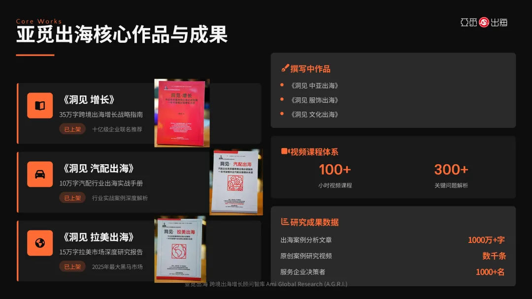 亚觅出海的研究成果已形成系统化的知识体系,其核心著作在跨境电商行业具有广泛影响力: