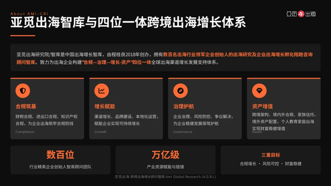 亚觅出海智库|致力为出海企业构建“合规—治理—增长-资产”四位一体增长体系