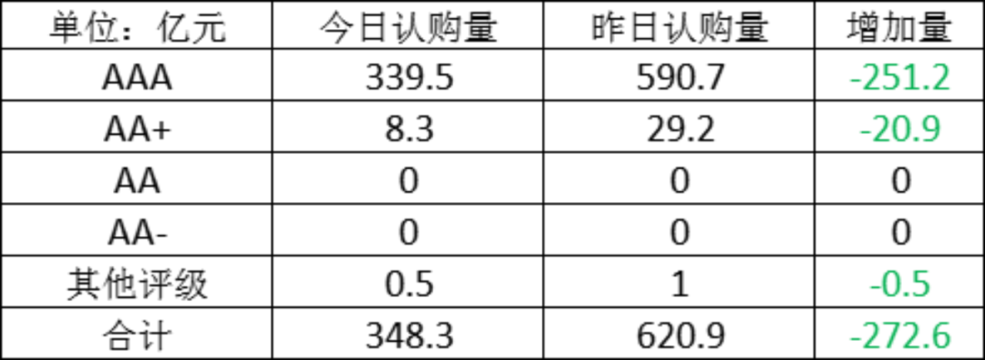 今日存单认购量规模348.3亿元,较上一工作日认购量有所减少,减少了272.6亿元。