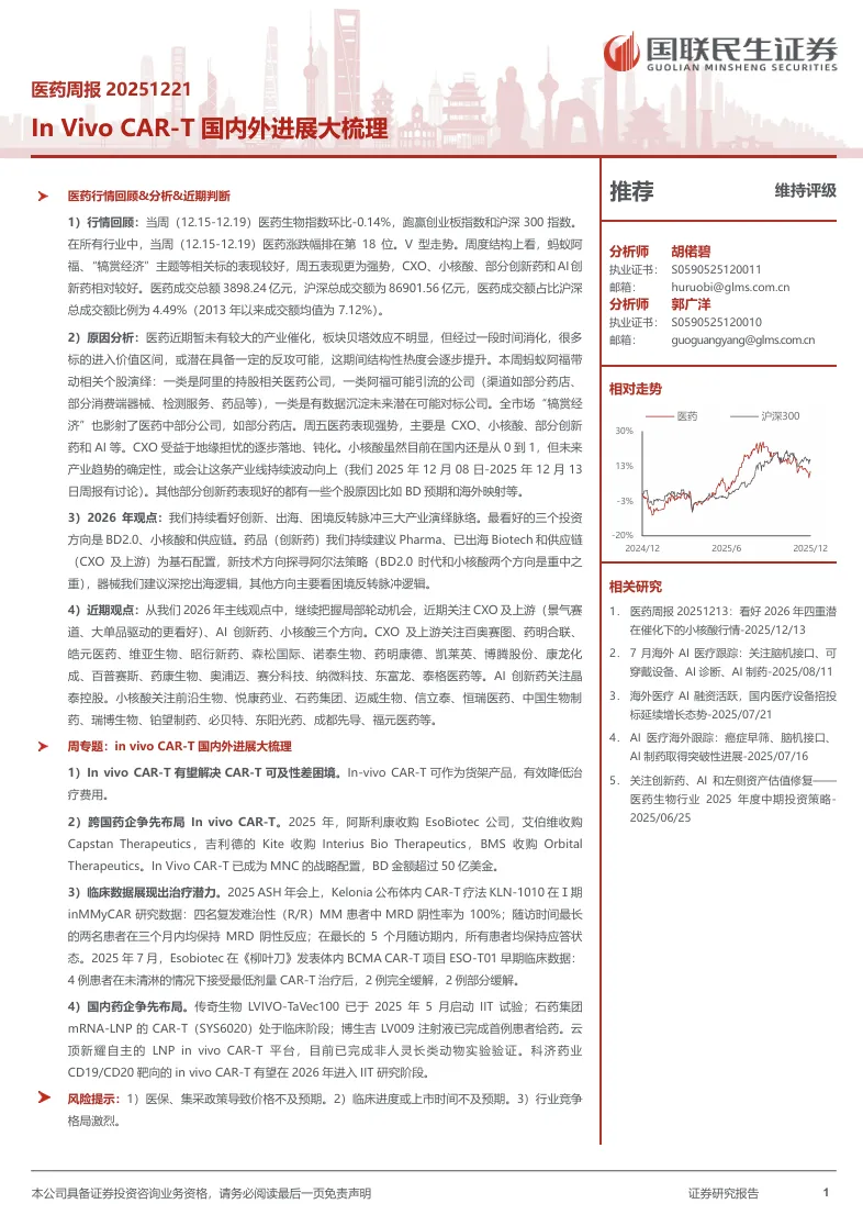 In vivo CAR-T有望破局CAR-T可及性差困境
