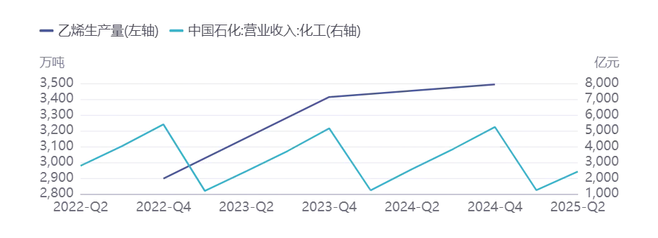图表 石化行业营收与乙烯产量趋势分析 |