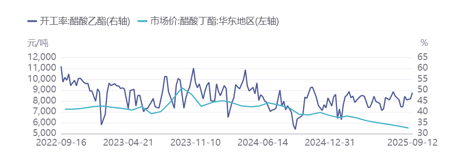 图表 醋酸酯类产品市场价格与开工率 |