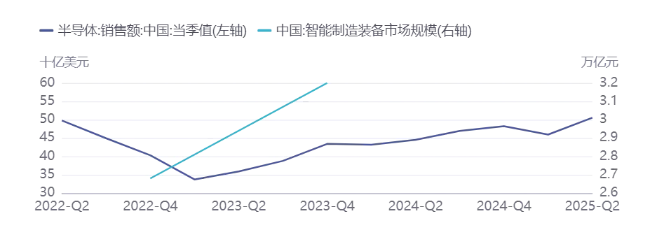 全球新材料市场规模持续扩大,中国表现强劲。2024年全球新材料市场规模达到4.7万亿美元,中国新材料产值突破8.48万亿元,显示出强劲的增长势头[72]。新材料产业链分为上游原材料供应、中游新材料制造和下游应用领域,有色金属在高性能新材料中扮演关键角色。长三角、珠三角等核心区域形成产业集群,支撑新材料行业快速发展。前沿新材料行业市场规模2017-2024年从1176亿元增长至3073亿元,预计2025年增长至3381亿元[73]。石墨烯行业市场规模2024年达到411亿元,同比上涨5.9%[73]。半导体行业增长强劲,中国半导体销售额为172.4亿美元,同比增长13.1%[74]。超硬材料及其制品出口量增价减,显示出超硬材料行业出口增长放缓[74]。