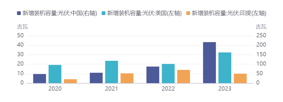 图表 全球光伏新增装机容量对比 |