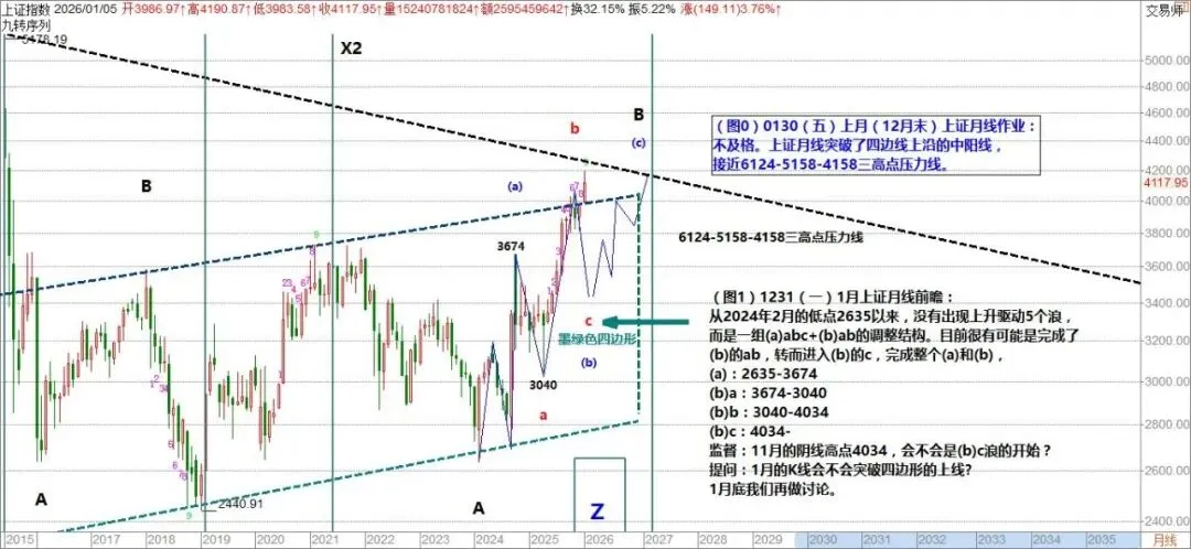 2月监控:1月的阳线高点4091,会不会是(b)b的顶点?