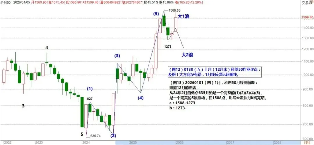(图12)0130(五)1月线科创50作业批评: