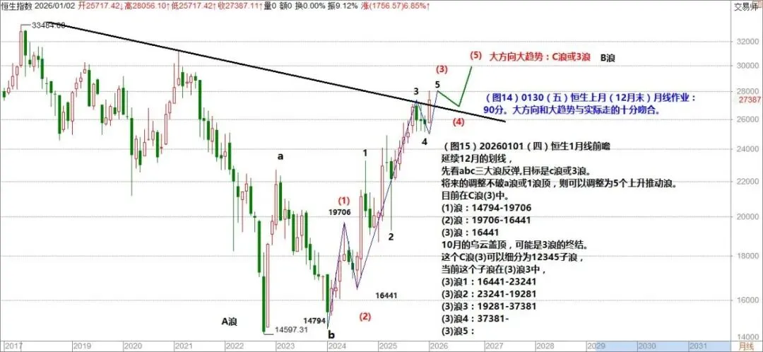 (图14)0130(五)恒生1月线作业批评: