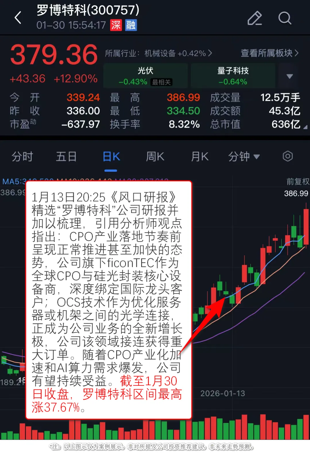 截至1月30日收盘,罗博特科区间最高涨37.67%。